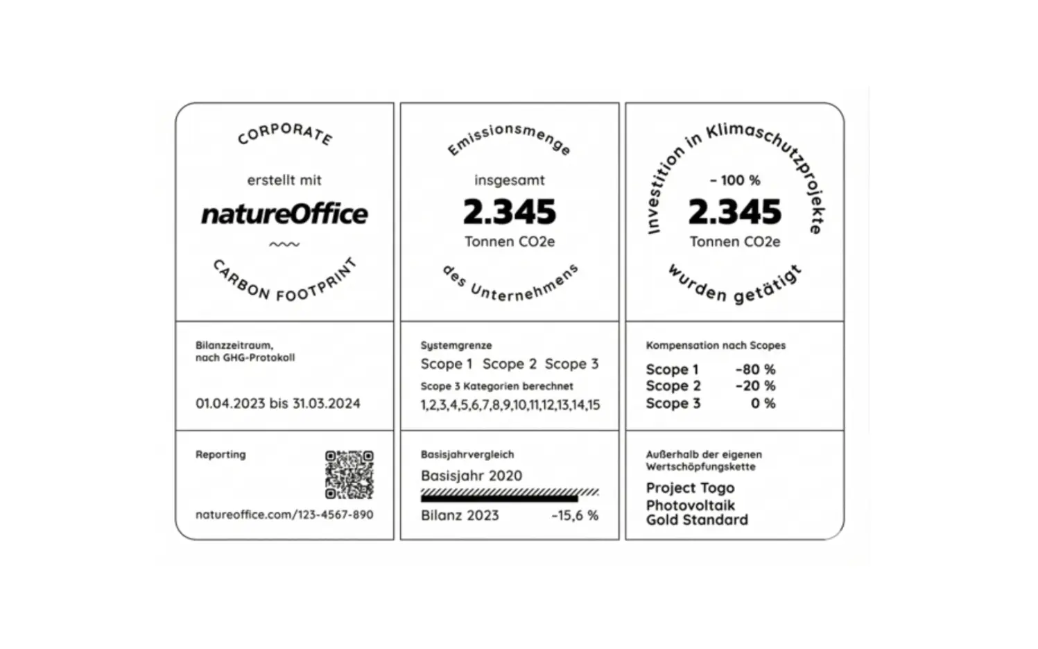 Das natureOffice Kennzeichen verfolgt genau diesen Ansatz. Über eine eindeutige ID und einen QR-Code verweist es auf einen digitalen Eintrag im corporate contribution network. Dort werden bereitgestellte Angaben – etwa zu Emissionsdaten, Projekten oder weiteren Unternehmensbeiträgen – strukturiert dokumentiert.